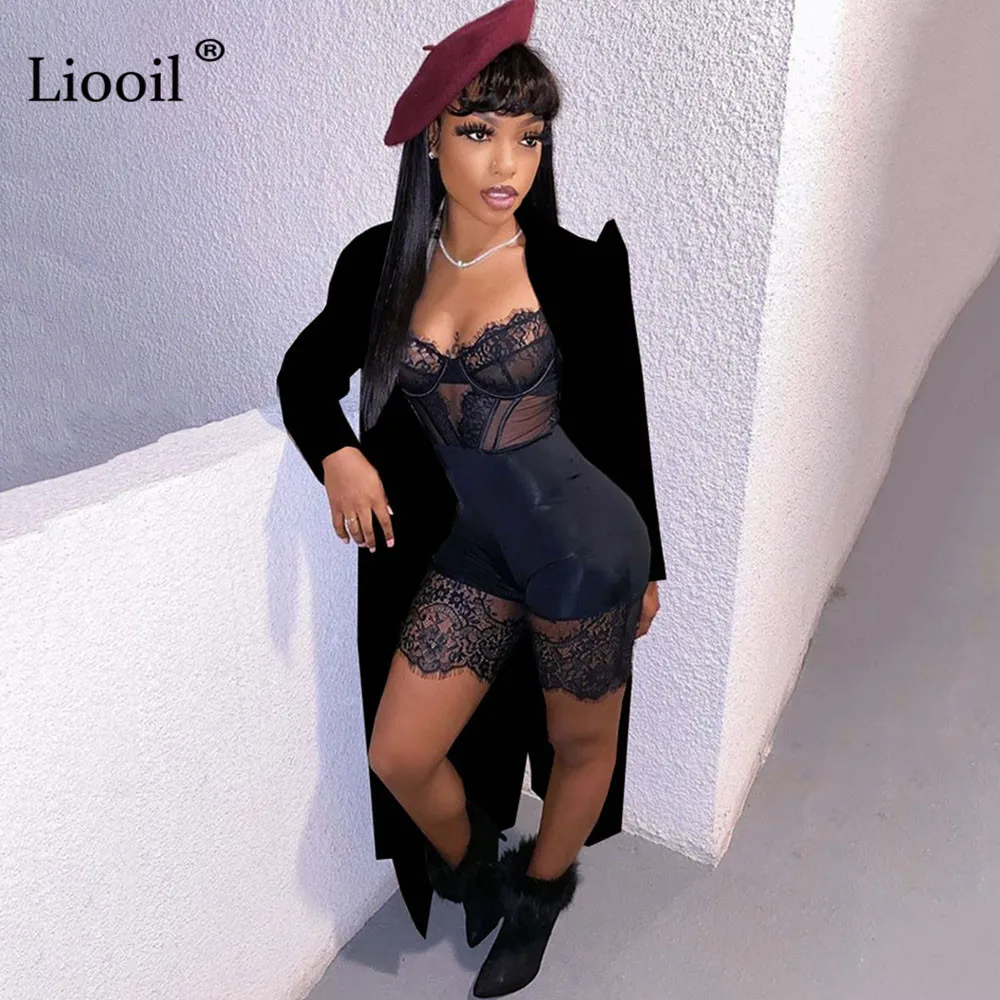 Images of Liooil One Piece Sexy Lace See Through Bodycon Women Jumpsuit 2020 Long Sleeve Strapless Tight Zipper Up Rompers Womens Jumpsuit :